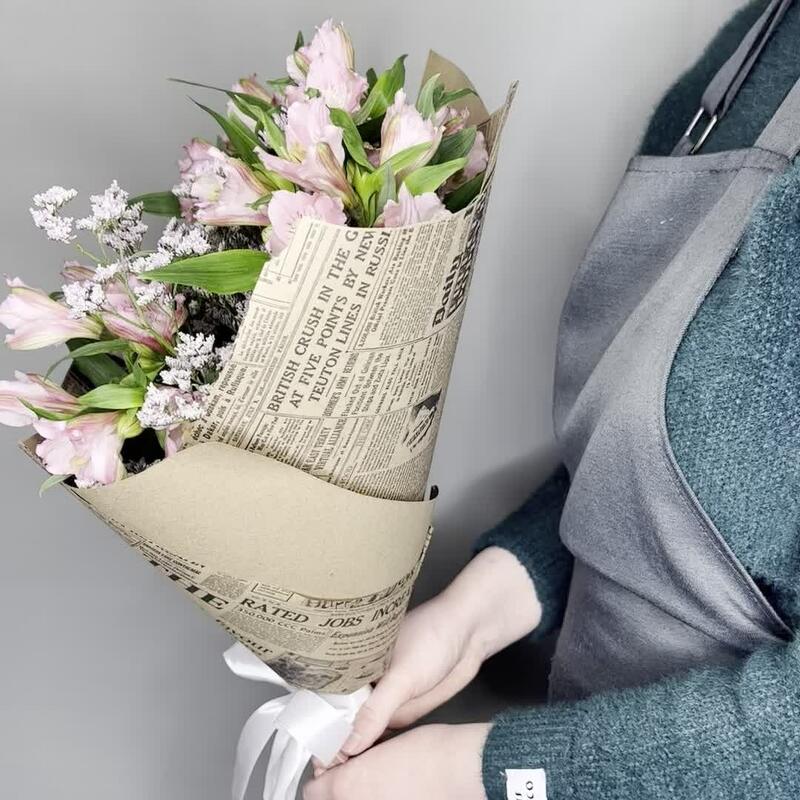 Альстромерия – 5 шт.Лимониум – 2 шт.Лента атласная – 1 шт.Упаковка дизайнерская – 1 шт.