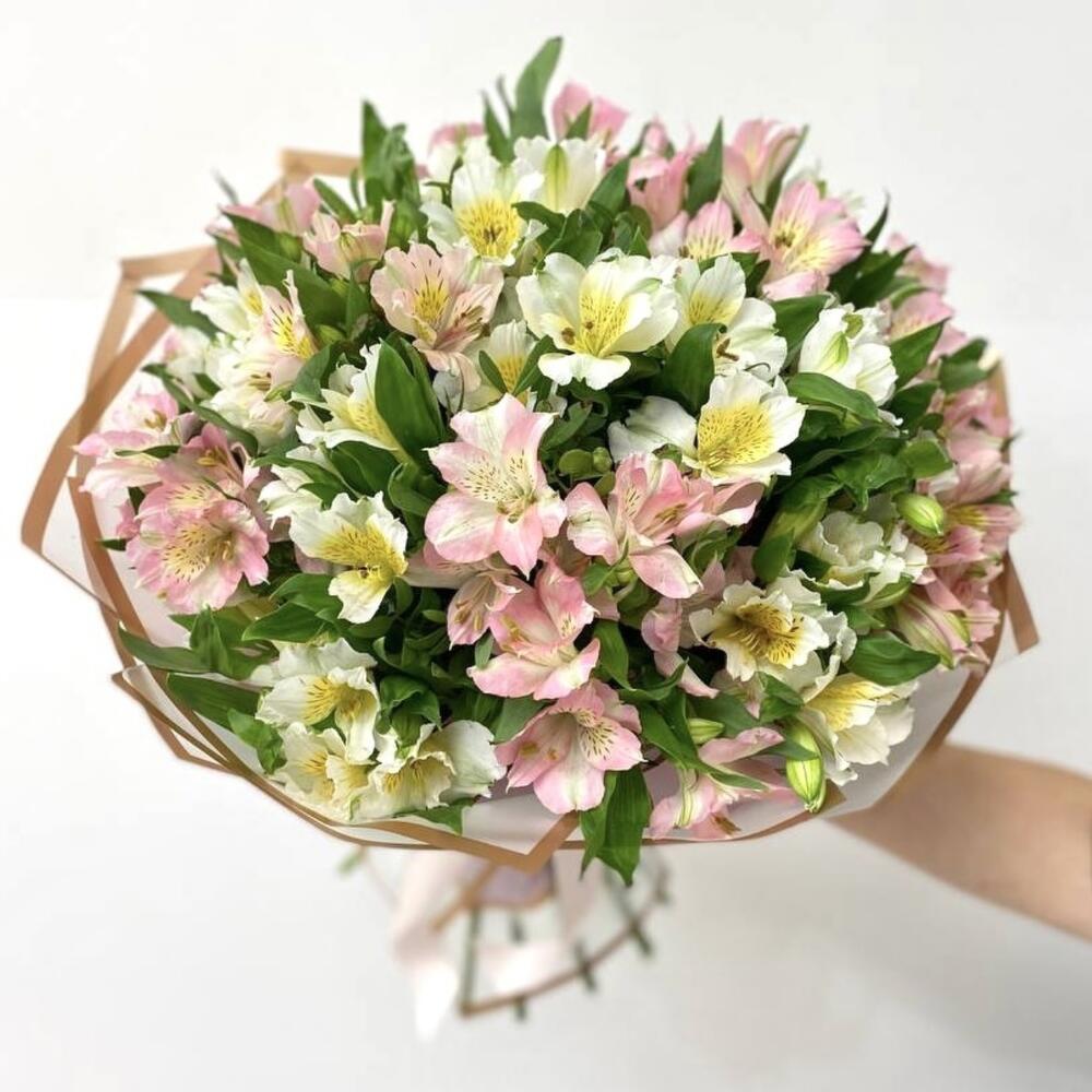 Альстромерия – 19 шт.Лента – 1 шт.Аквабокс – 1 шт.бумага дизайнерская – 1 шт.