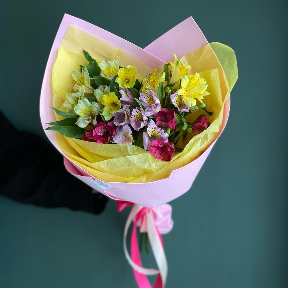 Альстромерия – 7 шт.Упаковка дизайнерская – 1 шт.Открыточка с вашими пожеланиями – 1 шт.уходовое средство для цветов – 1 шт.транспортировочная упаковка – 1 шт.
