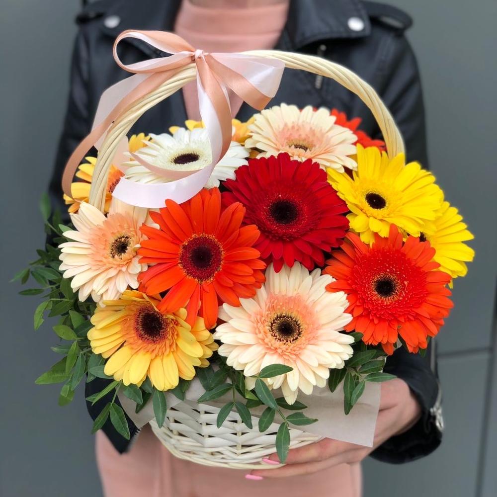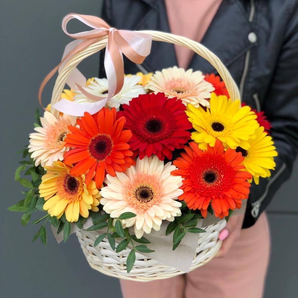 Корзина из гербер и зелени !