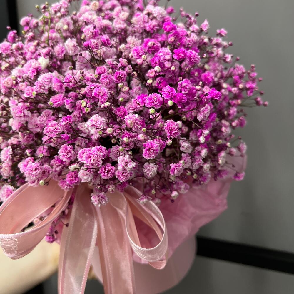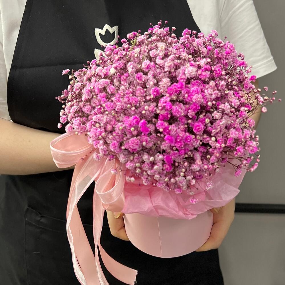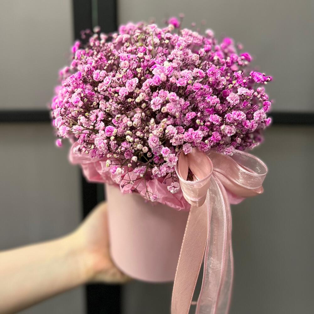 Гипсофила – 5 шт.Коробка шляпная – 1 шт.Оазис флористический – 1 шт.Лента атласная – 2 шт.
