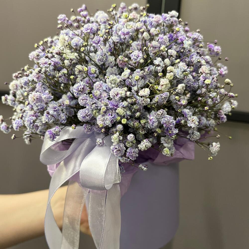 Гипсофила – 5 шт.Лента атласная – 2 шт.Оазис флористический – 1 шт.Шляпная коробка – 1 шт.