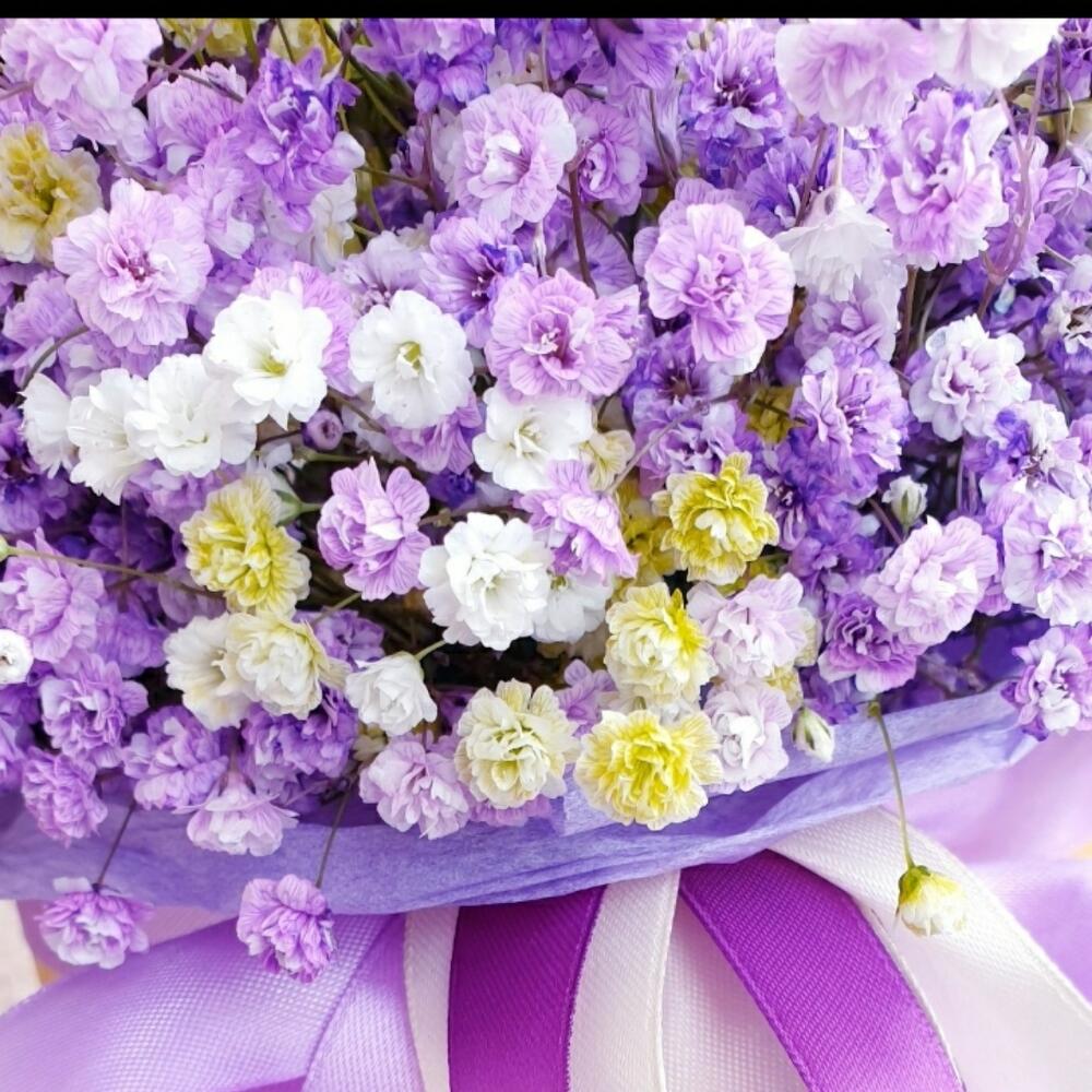 «Лавандовое созвездие» Букет из розы, гвоздики, статица и хлопка