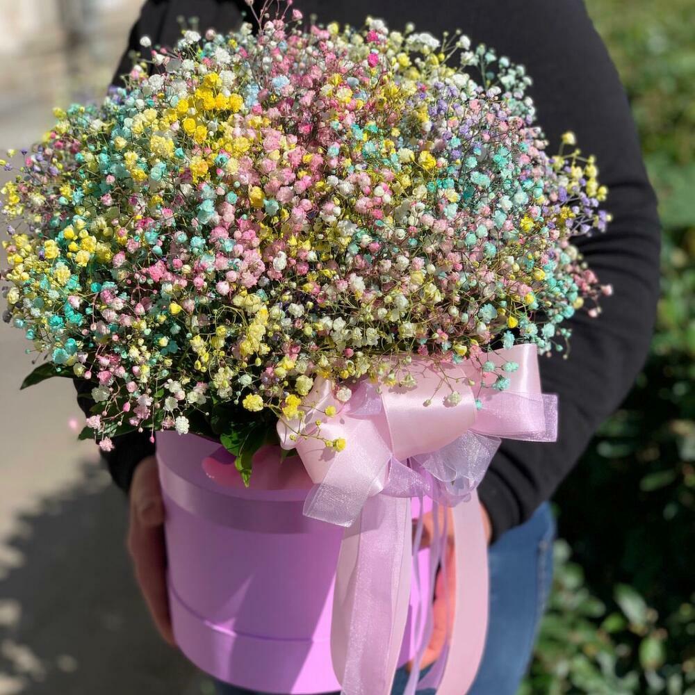 Коробка с гипсофилой ,,Радужная