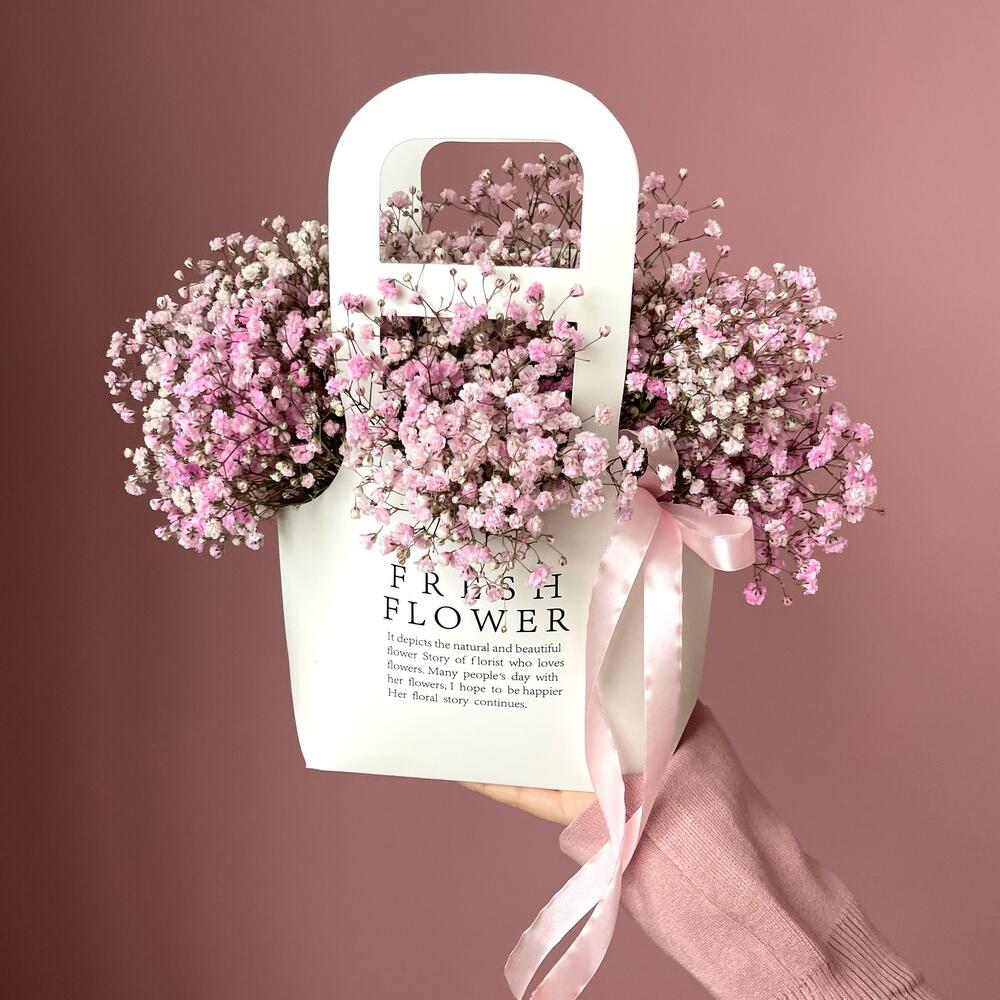 Стойкая гипсофила в крафтовом пакете – отличный подарок в день рождения!