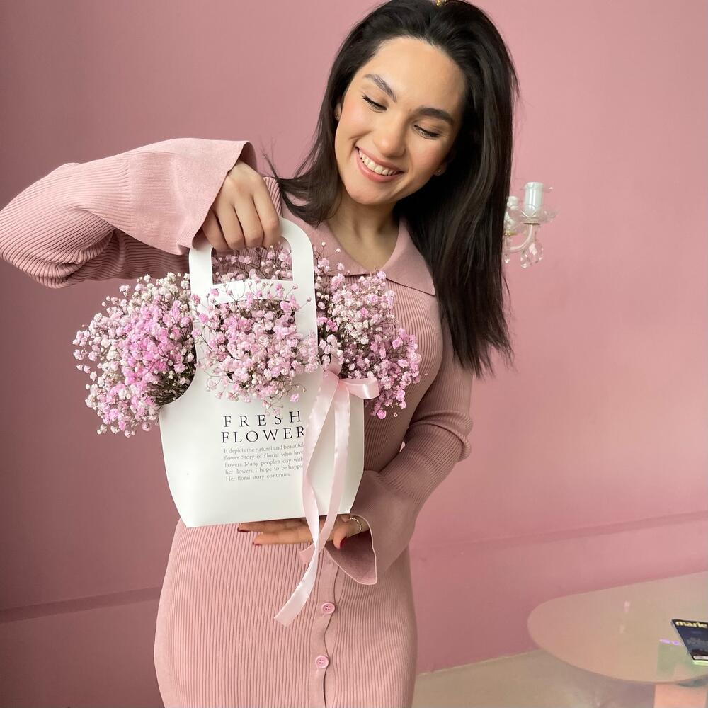 Розовая гипсофила в крафтовом пакете