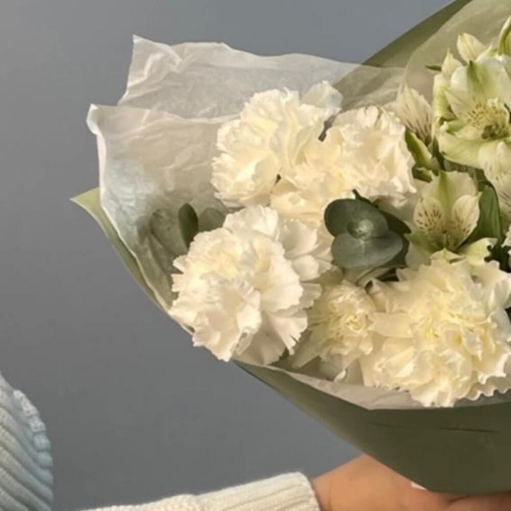 Гвоздика – 5 шт.Альстромерия – 7 шт.Упаковка дизайнерская – 1 шт.