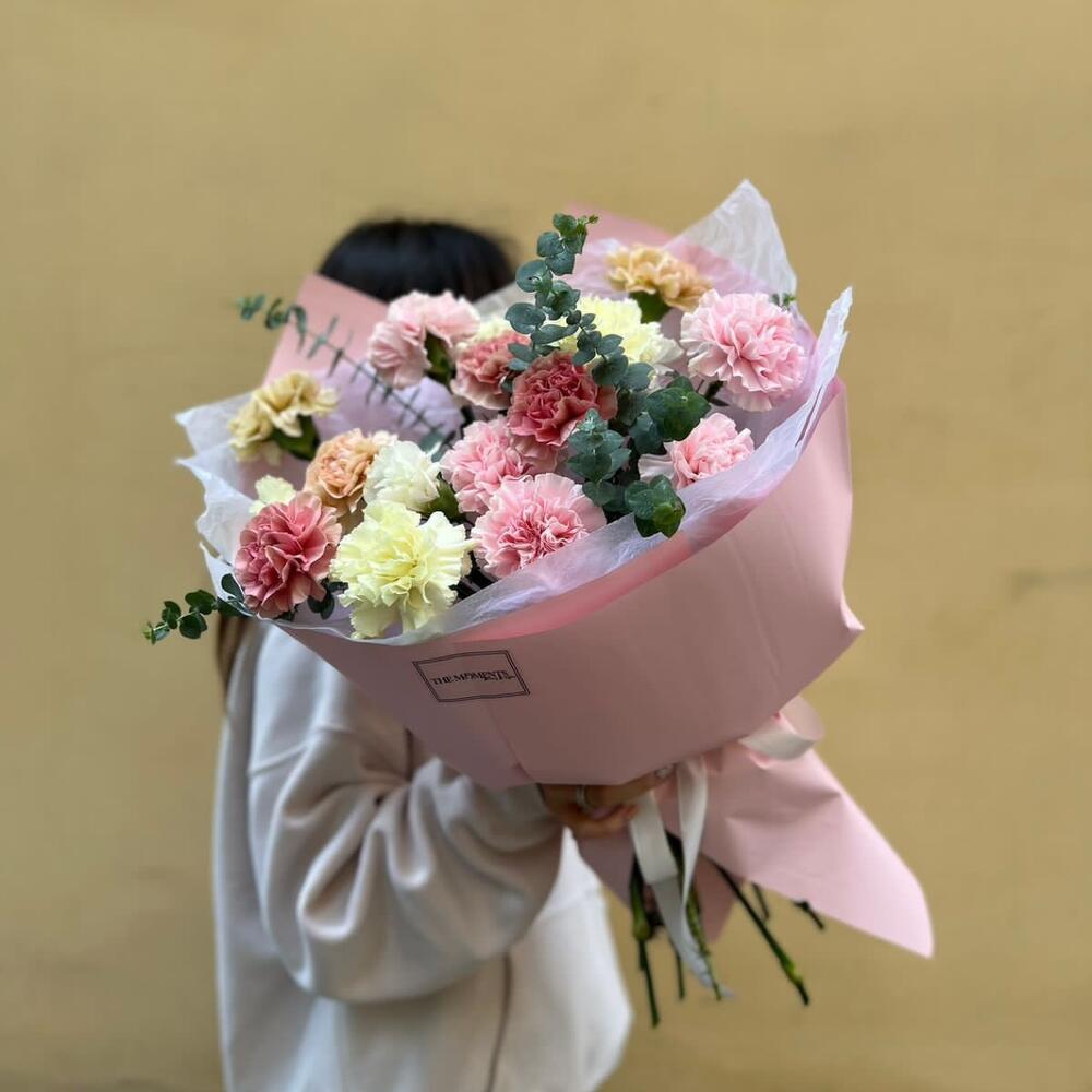 Гвоздики, Кустовые розы, Пионовидные розы, Розы