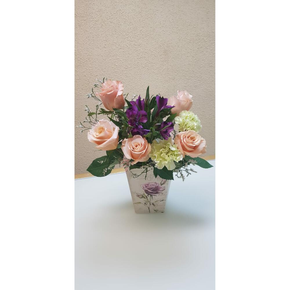 Композиция из роз и альстрамерии