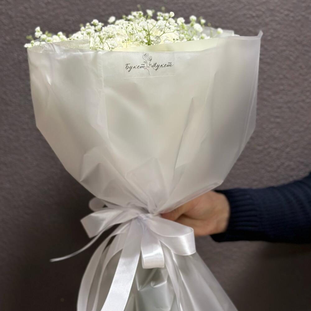Гипсофила – 2 шт.Лента атласная – 1 шт.Тишью – 2 шт.Пленка матовая – 2 шт.диантусы – 9 шт.