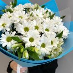 Букет из белой кустовой хризантемы и альстромерии