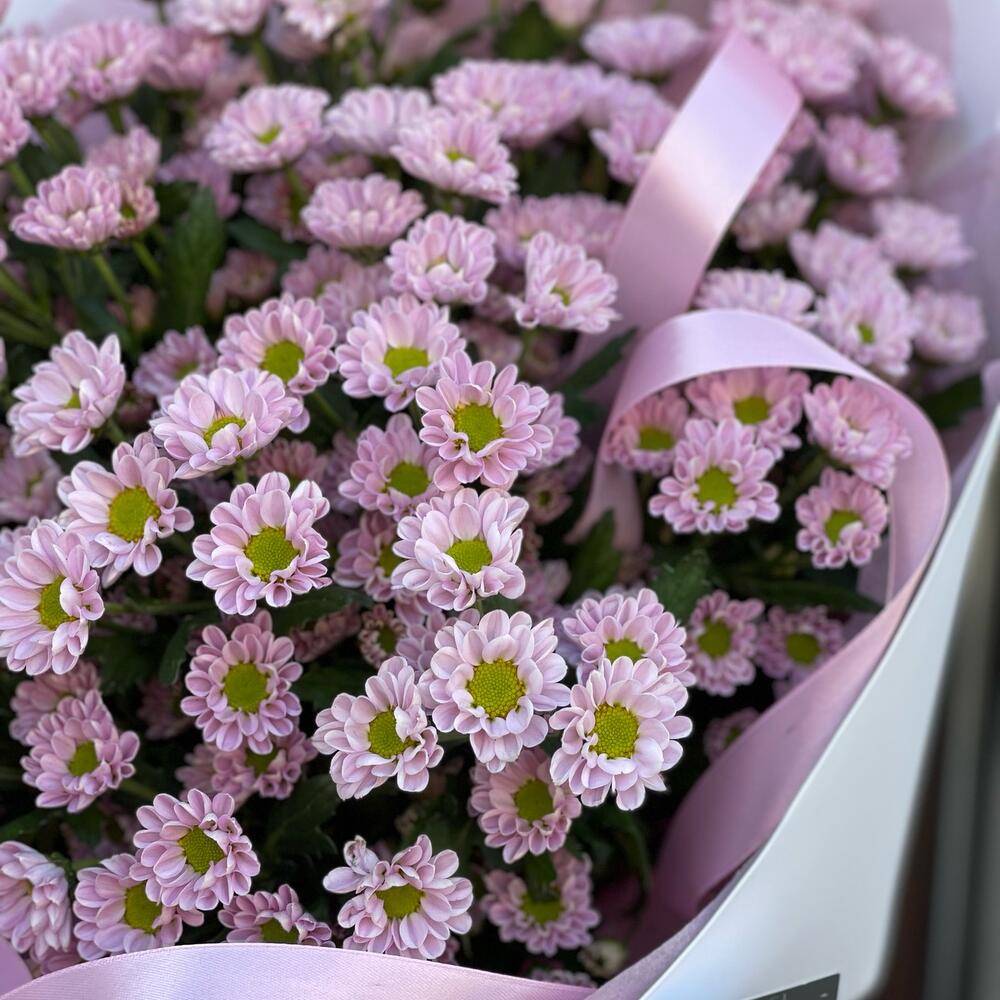 Лента – 3 шт.Хризантема Сантини – 15 шт.Упаковка дизайнерская – 1 шт.