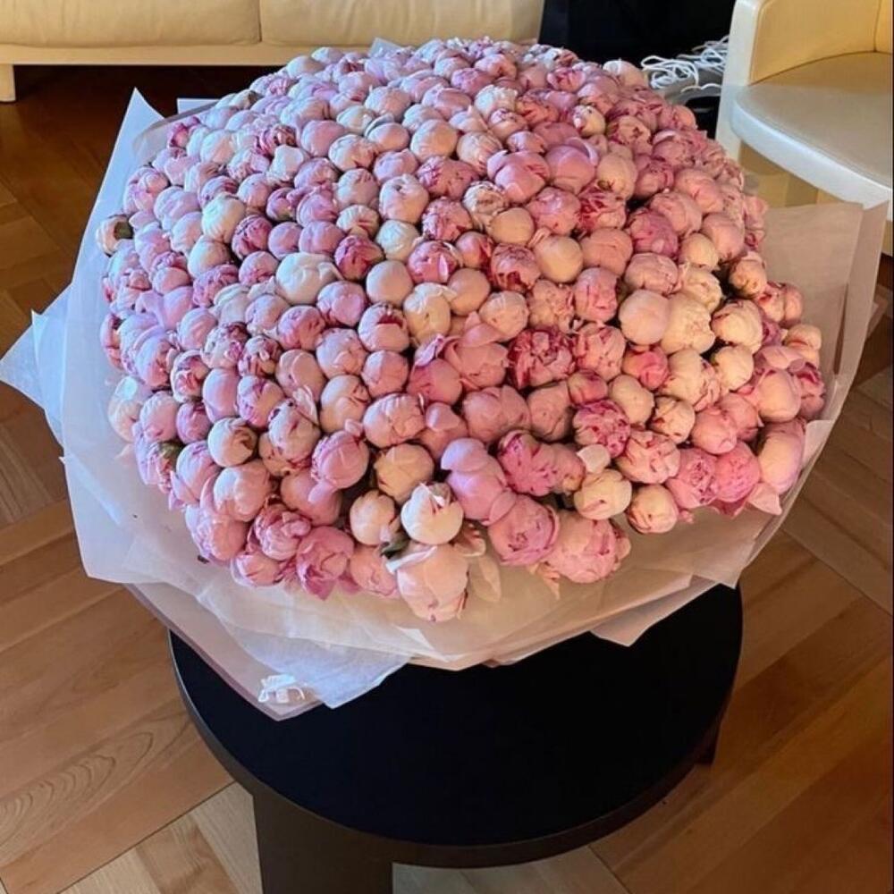 Пион Сара Бернар – 201 шт.Упаковка дизайнерская – 1 шт.Лента атласная – 2 шт.Открыточка с вашими пожеланиями – 1 шт.хорошее настроение – 100 шт.инструкция по уходу за цветами – 1 шт.коробка переноска – 1 шт.Кризал – 1 шт.