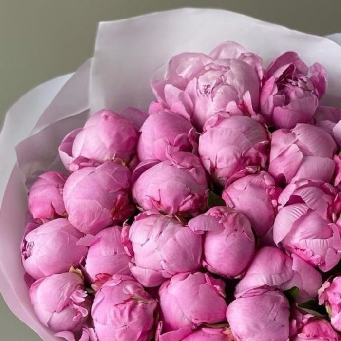 Пион – 29 шт.Упаковка дизайнерская – 1 шт.Лента атласная – 2 шт.Открыточка с вашими пожеланиями – 1 шт.хорошее настроение – 100 шт.инструкция по уходу за цветами – 1 шт.коробка переноска – 1 шт.Кризал – 1 шт.