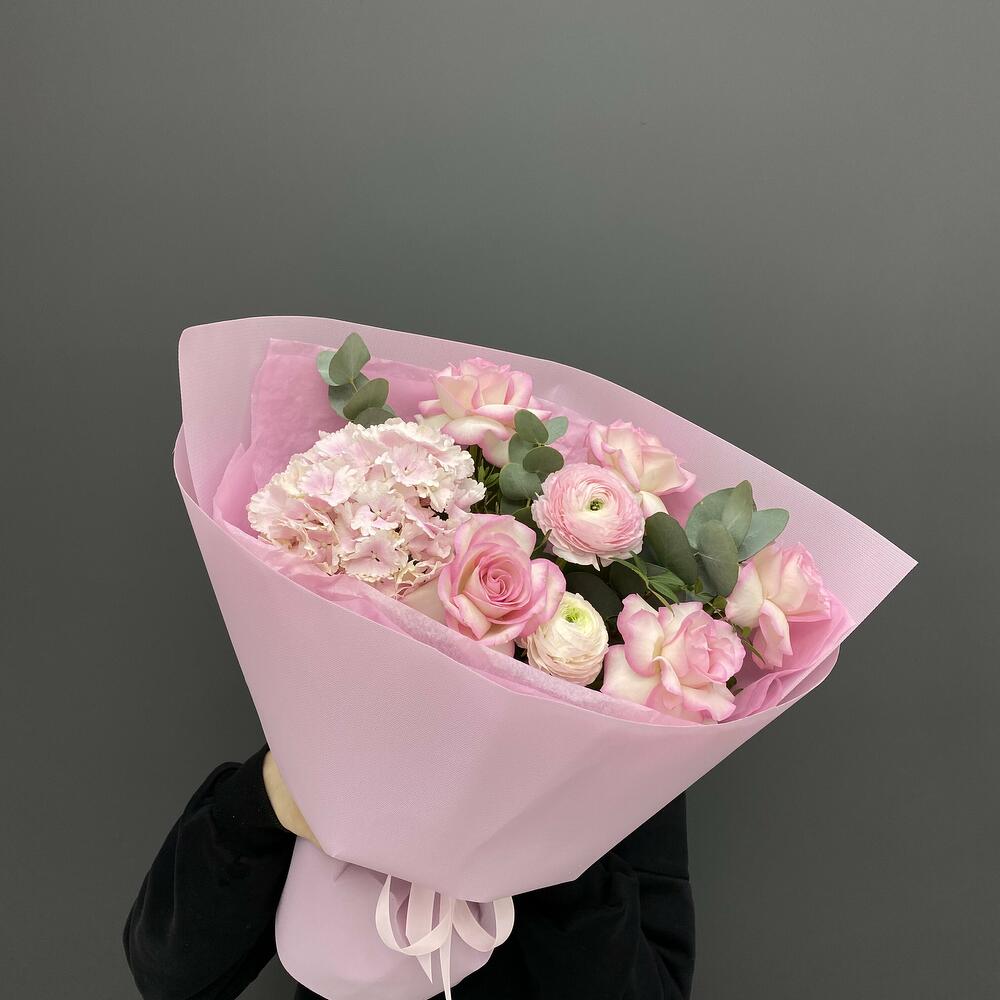 Гвоздики, Кустовые розы, Лизиантусы, Пионовидные розы, Розы