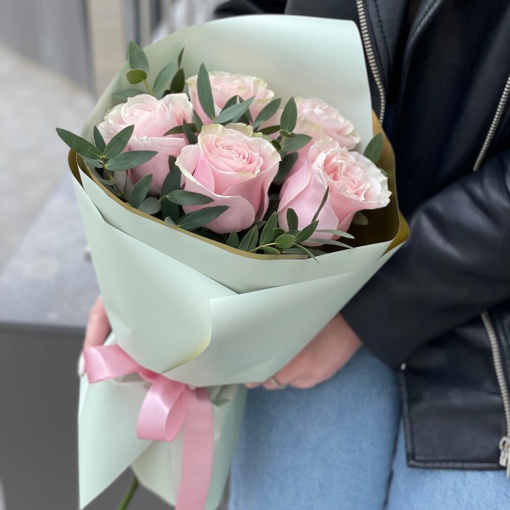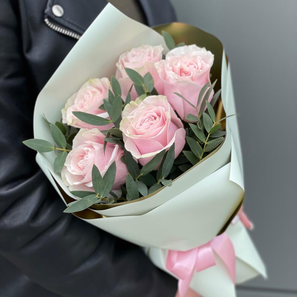 Букет Женственный из 5 роз и эвкалипта