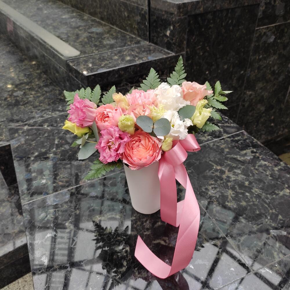Цветочная композиция в шляпной коробке