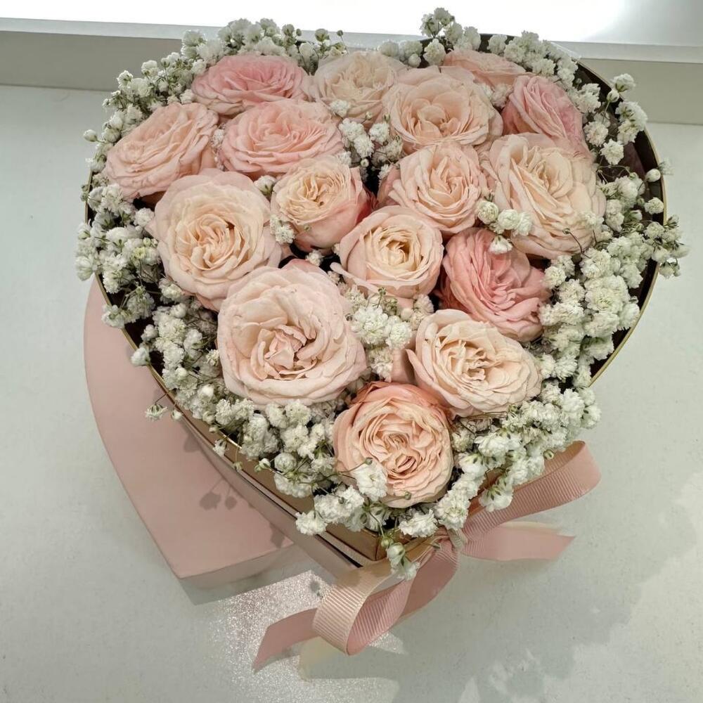 “Сладкое сердце ” – цветочная композиция с сладостями в коробке “Сердце”