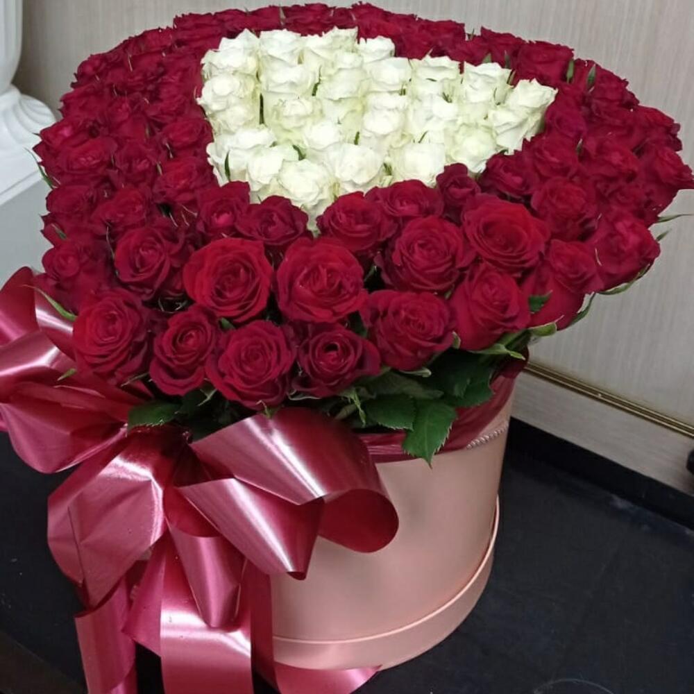 Роза красная – 71 шт. Роза белая – 30 шт. "сердечко для любимой " – 101 шт.
