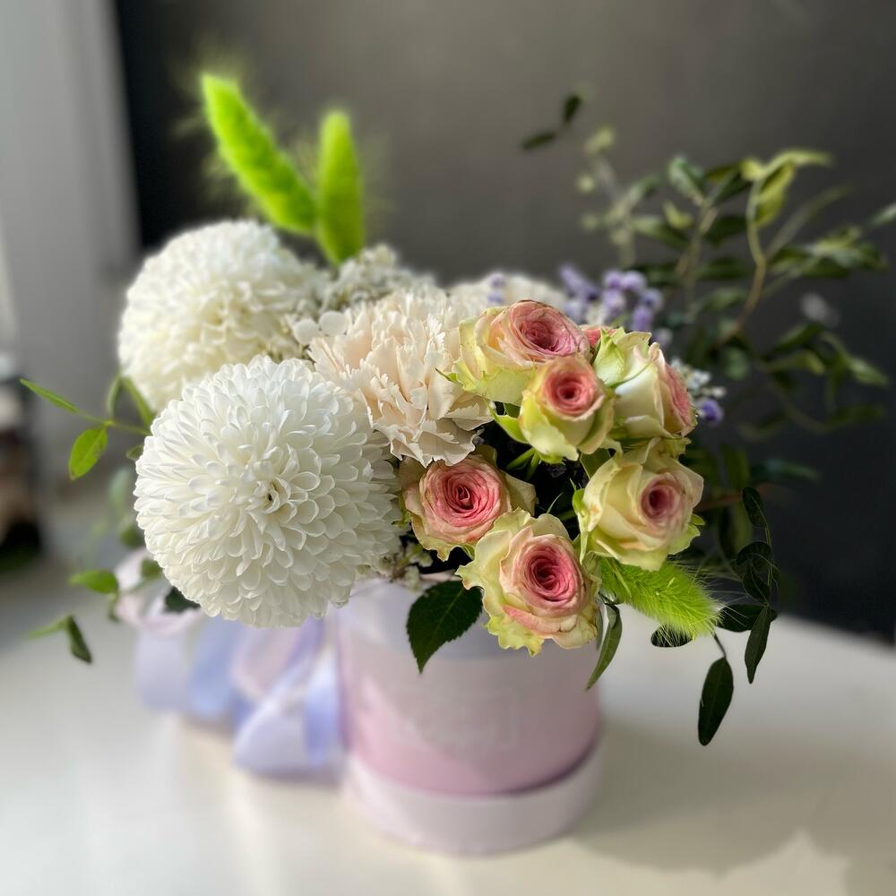 "В твоих глазах": нежная шляпная коробка с французскими розами