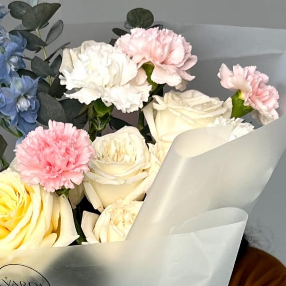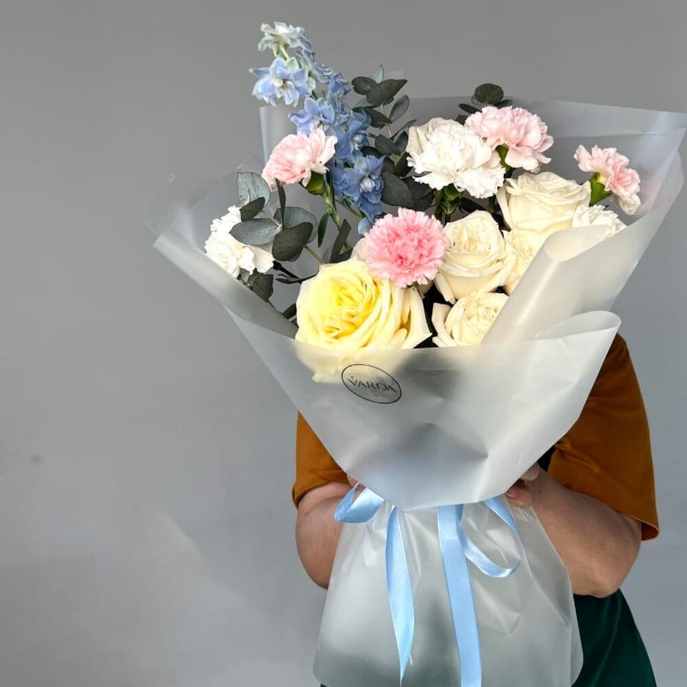 Гвоздики, Кустовые розы, Лизиантусы, Пионовидные розы, Розы