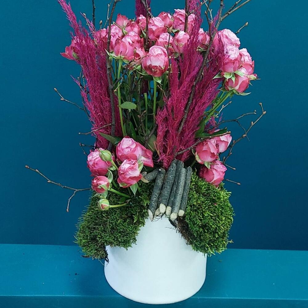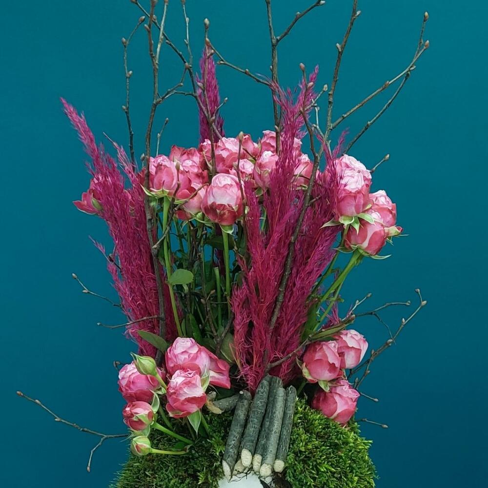 Гвоздики, Кустовые розы, Пионовидные розы, Розы
