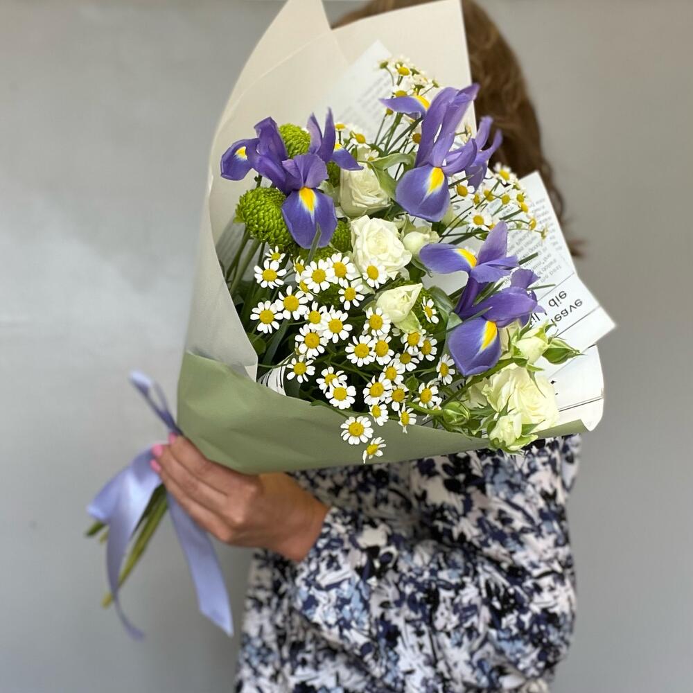 Летний букет «ирисы и ромашки»