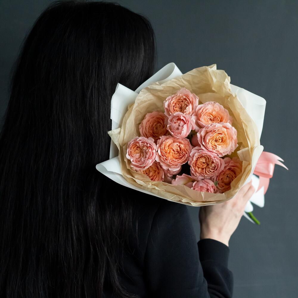 Небольшой монобукет пионовидных кустовых роз сорта Джульетта