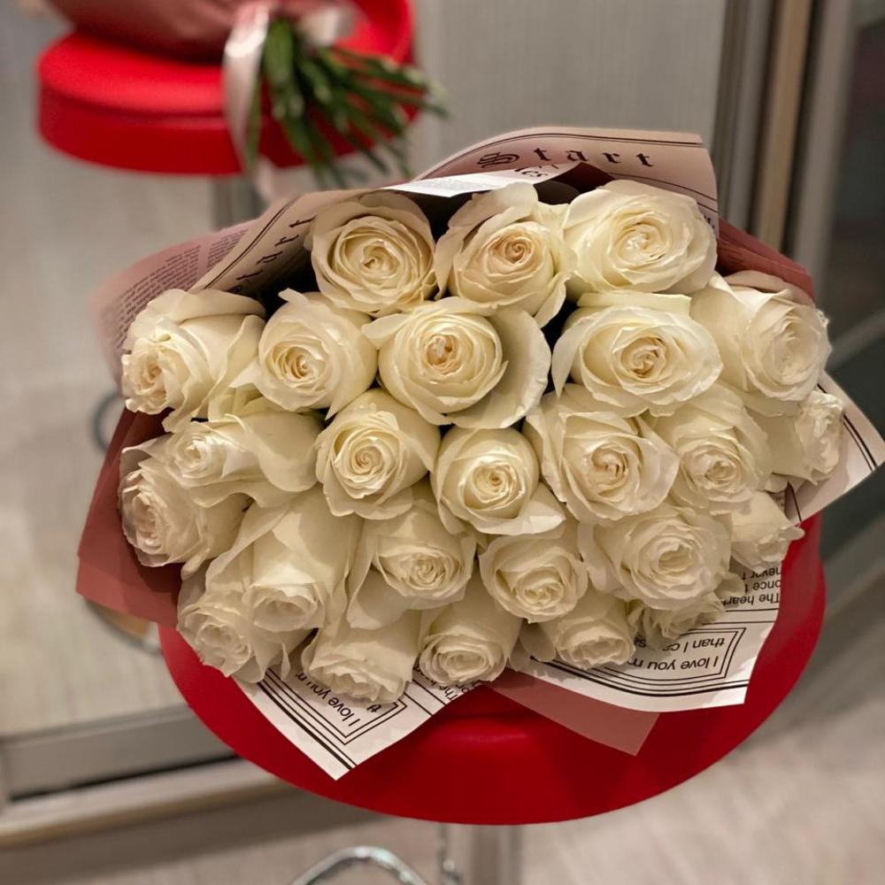 Монобукет из 25 белых роз в упаковке