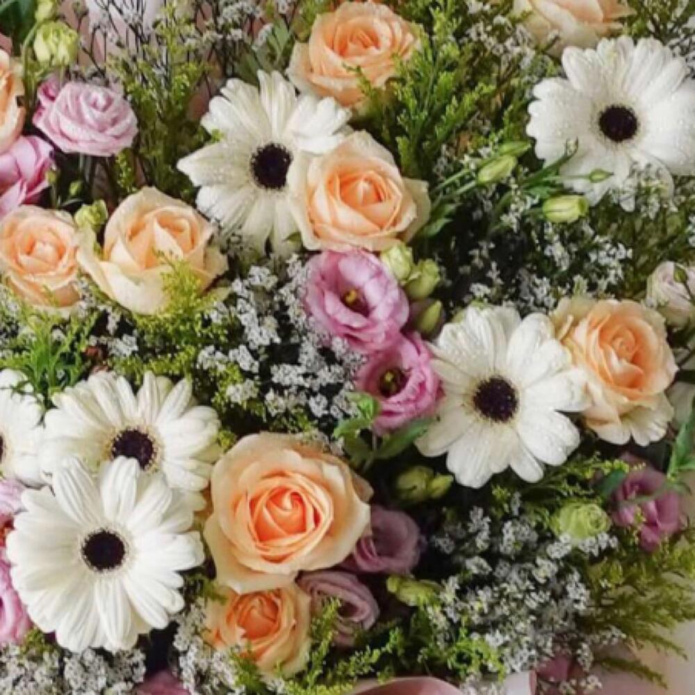 Категории: Герберы, Лизиантусы, Розы