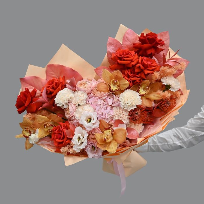 Огромный букет с французской розой, пион кустовой розой и орхидеей