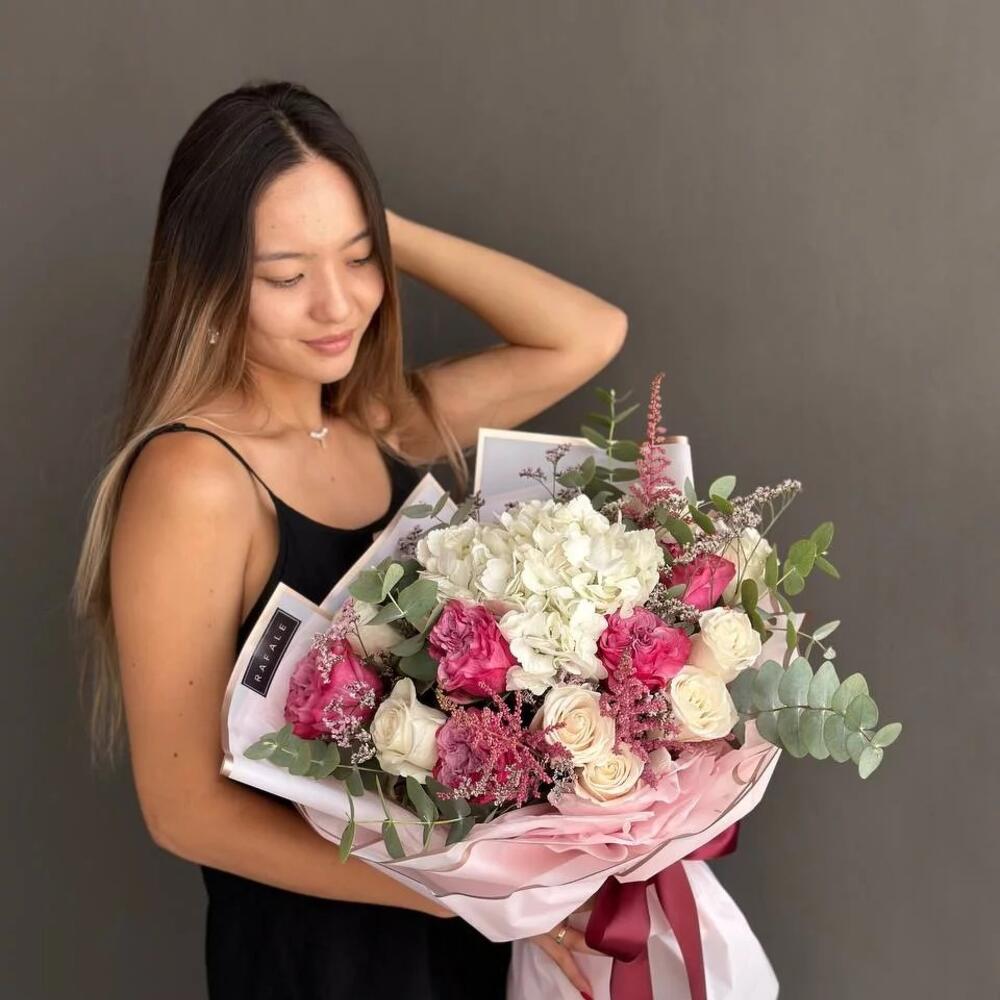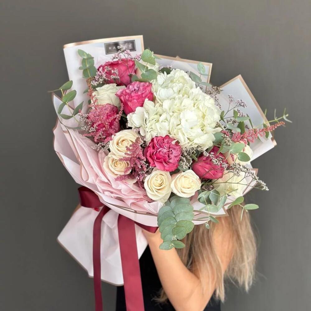 Альстромерии, Кустовые розы, Лизиантусы, Пионовидные розы, Розы, Ромашки