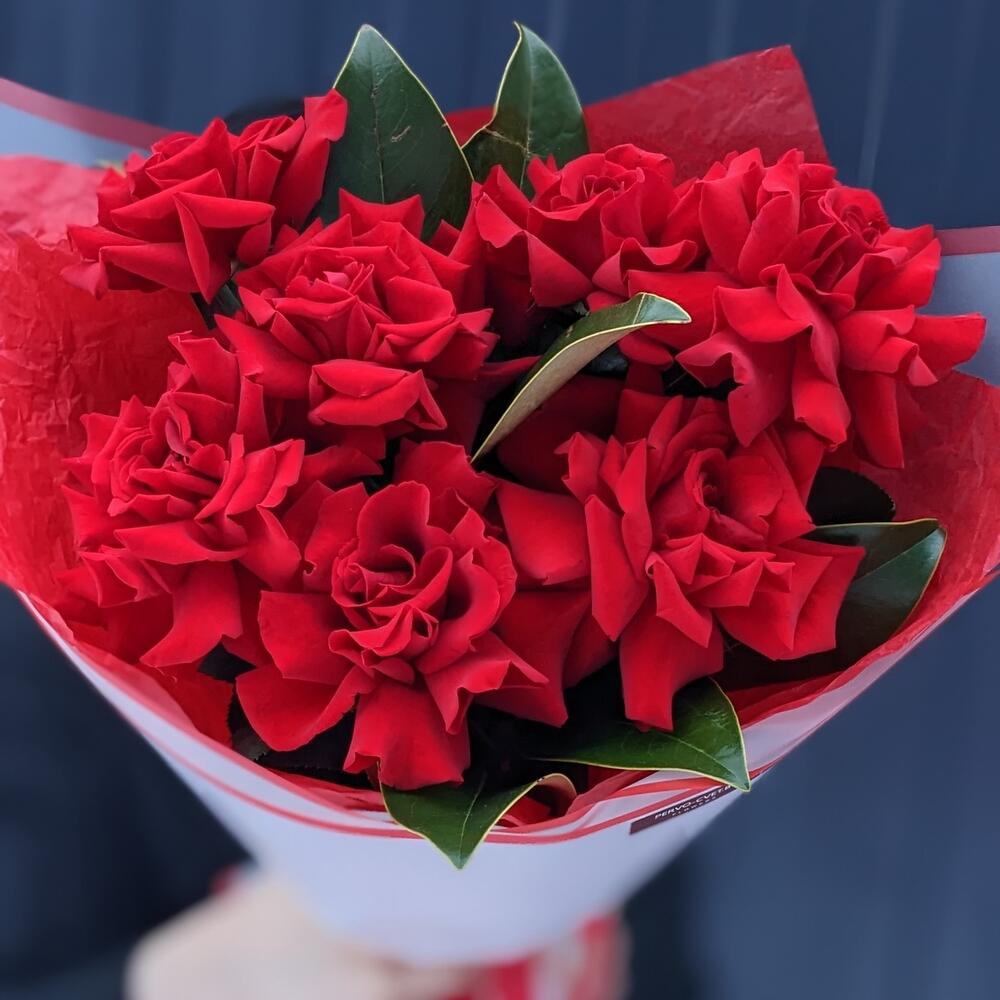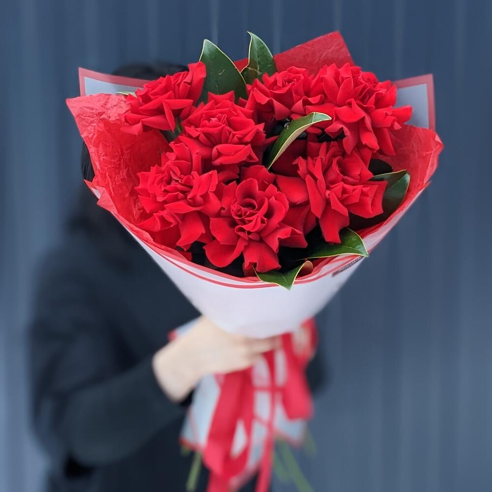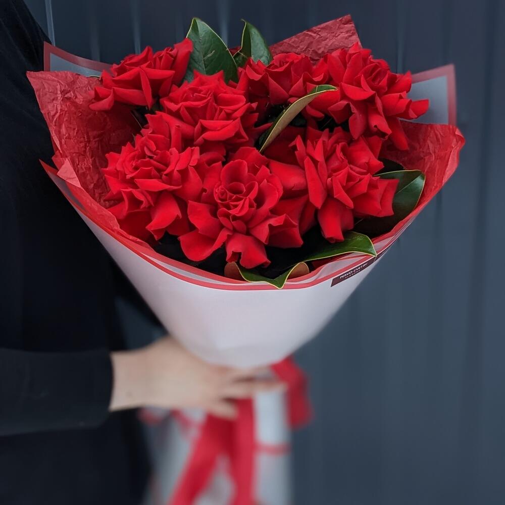 Французская роза – 7 шт. магнолия ветка – 2 шт. Упаковка дизайнерская – 1 шт.