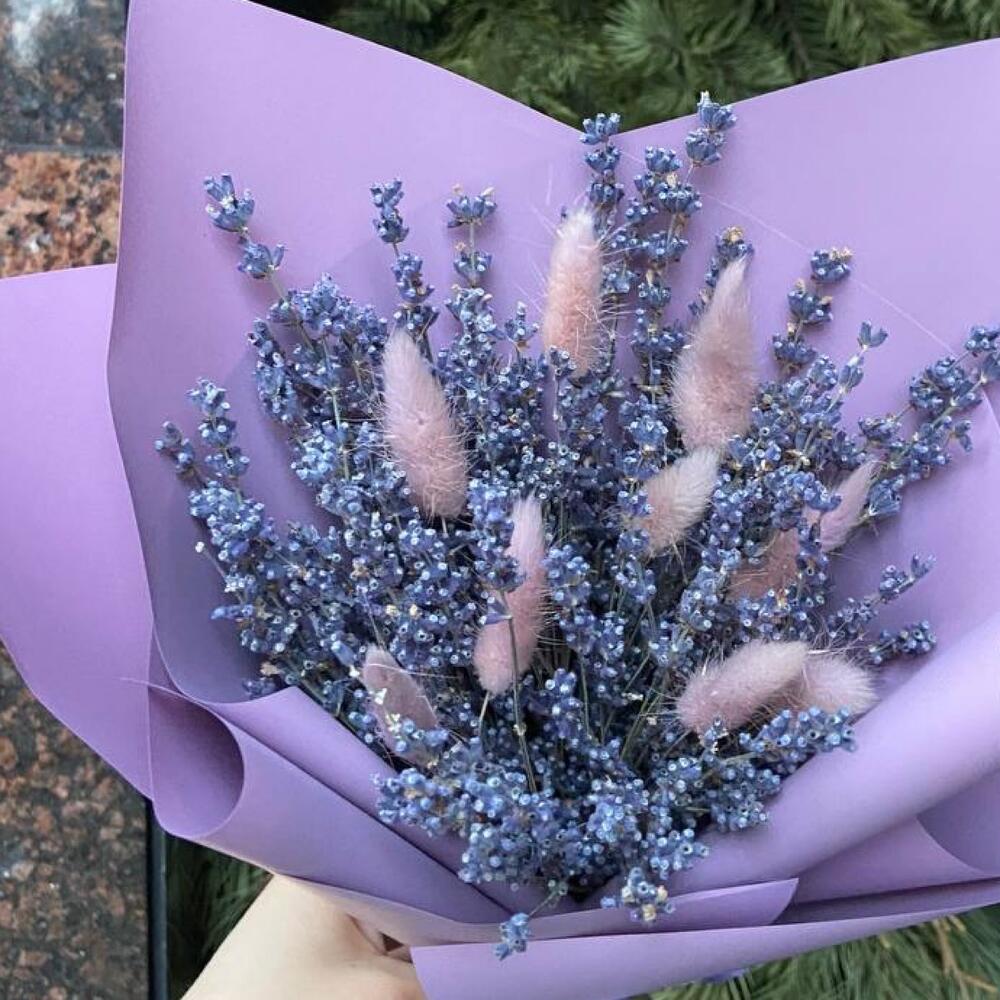 Упаковка – 1 шт.Лента атласная – 1 шт.Лаванда пучок – 1 шт.Лагурус (сухоцвет) – 10 шт.